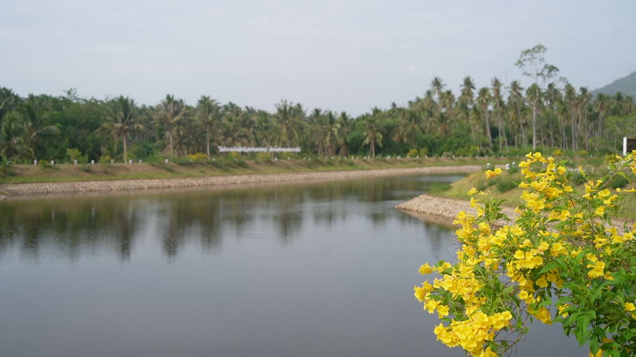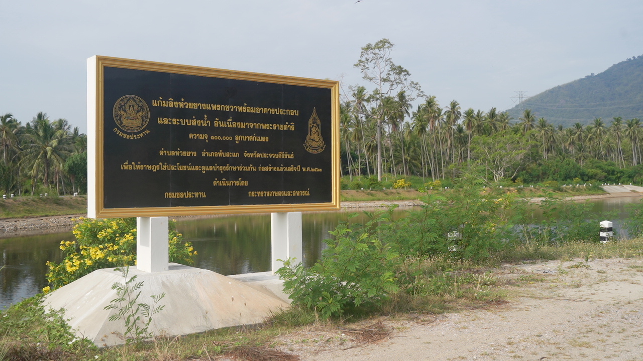 กรมชลประทาน ดำเนินการก่อสร้างแก้มลิงพร้อมอาคารประกอบและระบบส่งน้ำฯ ในพื้นที่บ้านห้วยมะปรางค์ หมู่ที่ 4 ตำบลห้วยยาง อำเภอทับสะแก จังหวัดประจวบคีรีขันธ์ ประกอบด้วย
