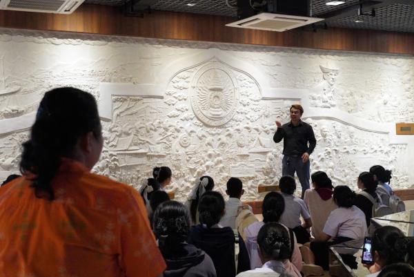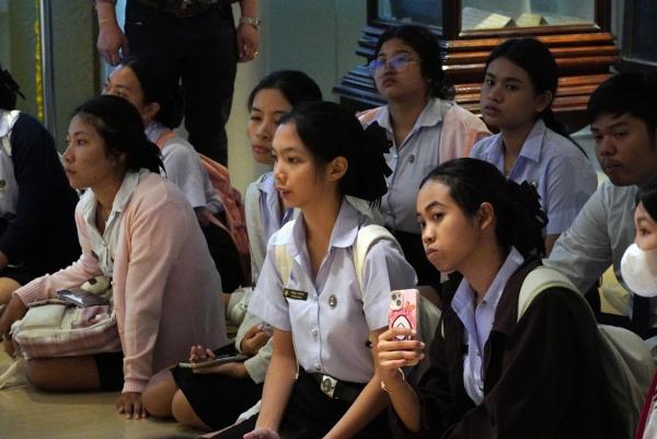 วันที่ 29 สิงหาคม พ.ศ. 2567 นักศึกษาสาขาวิชาอาหารและโภชนาการประยุกต์ ชั้นปีที่ 1 คณะวิทยาศาสตร์และเทคโนโลยี และนักศึกษาสาขาวิชาภาษาไทย คณะมนุษยศาสตร์และสังคมศาสตร์ มหาวิทยาลัยราชภัฏเพชรบุรี ชั้นปีที่ 1 จำนวน 54 คน เข้าเยี่ยมชมศูนย์เรียนรู้ศาสตร์พระราชาและภูมิปัญญาราชภัฏเพชรบุรี สำนักวิทยบริการและเทคโนโลยีสารสนเทศ มหาวิทยาลัยราชภัฏเพชรบุรี ซึ่งเป็นการบูรณาการกับการเรียนการสอนรายวิชา "รักษ์เมืองพริบพรี" โดยผู้ช่วยศาสตราจารย์ ดร.ประสิทธิ์ คำพล อาจารย์ประจำรายวิชาเป็นผู้สอน ในการเข้าเยี่ยมชมครั้งนี้ นายทวี นวมนิ่ม, นางสาวดาวเรือง ขมแก้วและนางนิรดา เอี่ยมอาษา บุคลากรสำนักวิทยบริการและเทคโนโลยีสารสนเทศ ได้นำชมศูนย์เรียนรู้ศาสตร์พระราชาและภูมิปัญญาราชภัฏเพชรบุรี เริ่มตั้งแต่หอเกียรติภูมิปัญญามหาวิทยาลัยราชภัฏเพชรบุรี (PBRU Hall of Fame) และศูนย์เรียนรู้ศาสตร์พระราชาเพื่อการพัฒนาอย่างยั่งยืน ประกอบด้วยนิทรรศการ 3 ห้อง คือ ห้องรอยเสด็จฯ เพชรบุรี ห้องเฉลิมพระเกียรติ รัชกาลที่ 10 และพระบรมวงศ์ และห้องราชภัฏน้อมนำแนวพระราชดำริเพื่อการพัฒนา