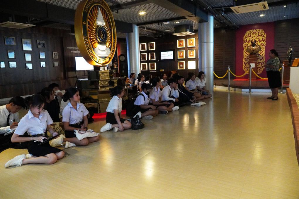 วันที่ 16 กรกฏาคม 2568 นักศึกษาสาขาวิชาคณิตศาสตร์ ชั้นปีที่ 1 คณะวิทยาศาสตร์และเทคโนโลยี มหาวิทยาลัยราชภัฏเพชรบุรี จำนวน 29 คน เข้าเยี่ยมชมศูนย์เรียนรู้ศาสตร์พระราชาและภูมิปัญญาราชภัฏเพชรบุรี สำนักวิทยบริการและเทคโนโลยีสารสนเทศ มหาวิทยาลัยราชภัฏเพชรบุรี เป็นการบูรณาการการเรียนการสอนกับราชวิชาจริยธรรมความเป็นครู โดย อาจารย์ ดร.เอื้อมพร โตภานุรักษ์กุล เป็นผู้สอน เพื่อให้นักศึกษาได้รู้จักแหล่งเรียนรู้ของมหาวิทยาลัย