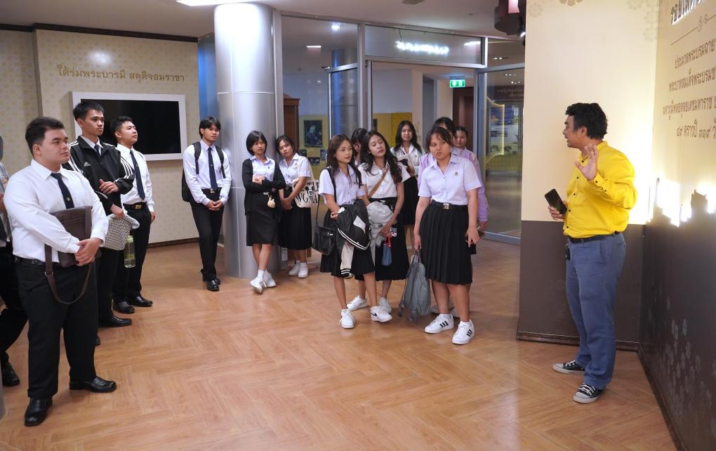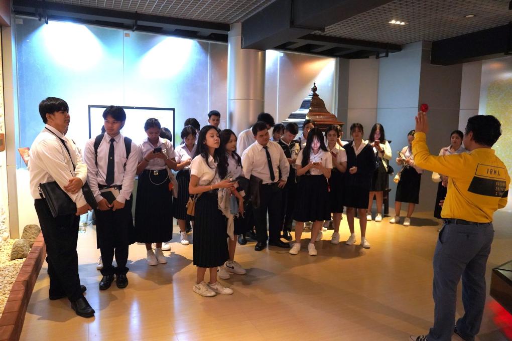 วันที่ 21 กรกฏาคม 2568 นักศึกษาสาขาวิชาภาษาไทย ชั้นปีที่ 1 คณะมนุษยศาสตร์และสังคมศาสตร์ มหาวิทยาลัยราชภัฏเพชรบุรี จำนวน 26 คน เข้าเยี่ยมชมศูนย์เรียนรู้ศาสตร์พระราชาและภูมิปัญญาราชภัฏเพชรบุรี สำนักวิทยบริการและเทคโนโลยีสารสนเทศ มหาวิทยาลัยราชภัฏเพชรบุรี เป็นการบูรณาการการเรียนการสอนกับรายวิชาภาษาอังกฤษธุรกิจ โดย รศ.ดร.สริตา บัวเขียว เป็นผู้สอน เพื่อให้นักศึกษาได้รู้จักแหล่งเรียนรู้ของมหาวิทยาลัย