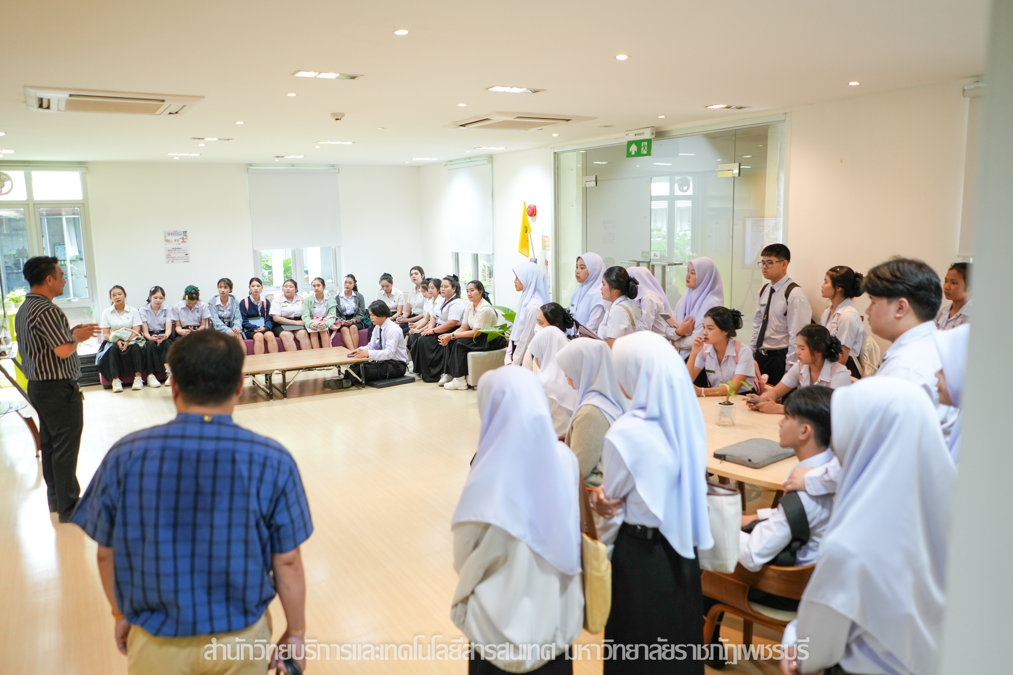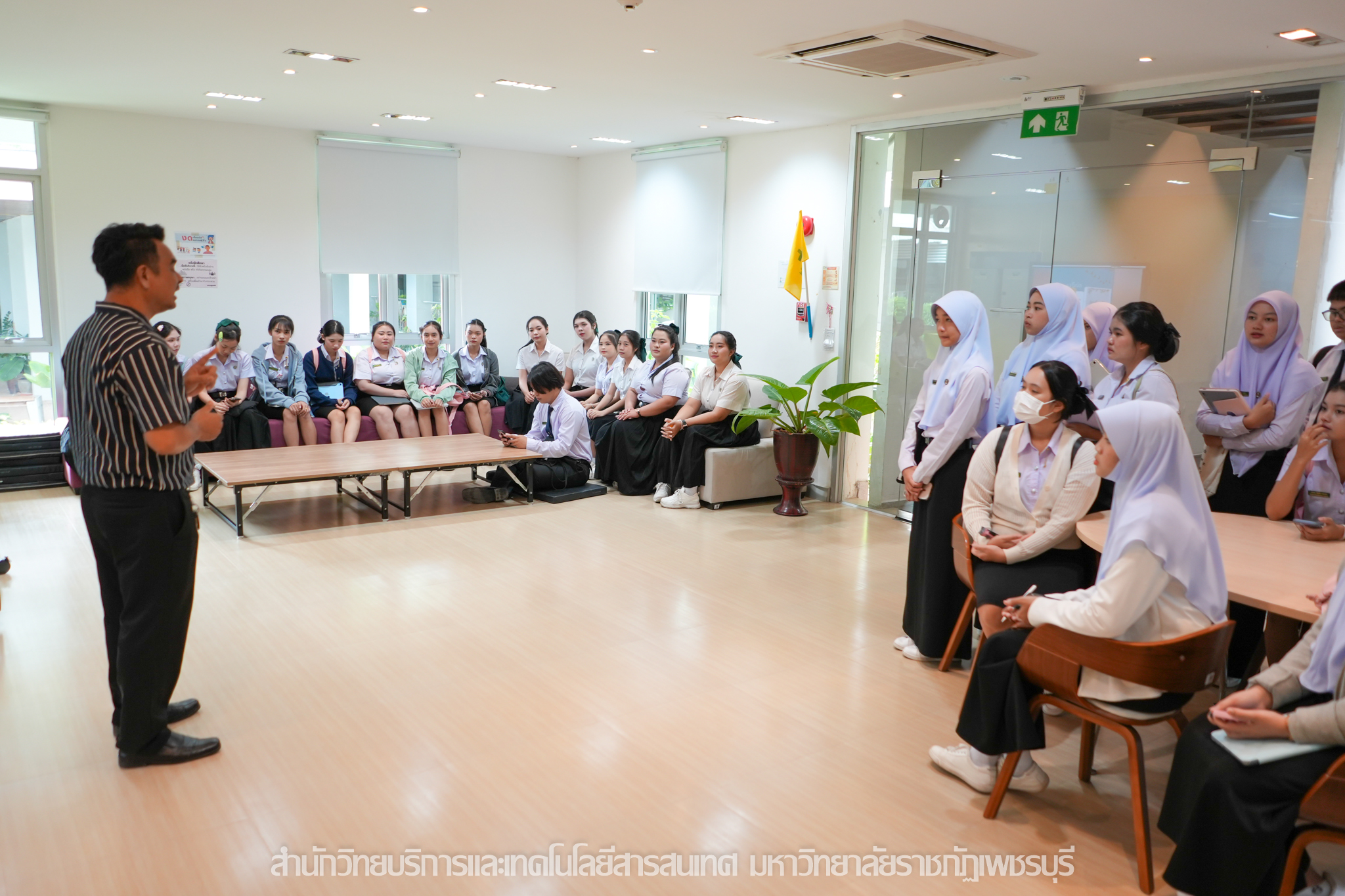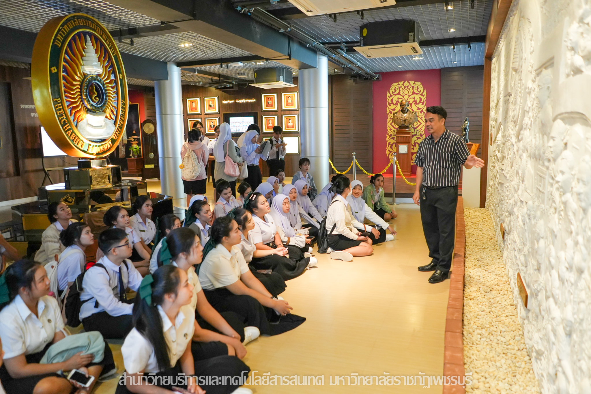 วันที่ 19 สิงหาคม 2568 นักศึกษาปีที่ 1 สาขาวิชาแพทย์แผนไทยและสาขาวิชานาฎศิลป์ เรียนในรายวิชารักษ์เมืองพริบพรี จำนวน 55 คน เข้าเยี่ยมชมศูนย์เรียนรู้ศาสตร์พระราชาและภูมิปัญญาราชภัฏเพชรบุรี สำนักวิทยบริการและเทคโนโลยีสารสนเทศ มหาวิทยาลัยราชภัฏเพชรบุรี เป็นการบูรณาการการเรียนการสอนกับรายวิชารักษ์เมืองพริบพรี โดยผศ.ดร.ประสิทธิ์ คำพล คณะมนุษยสาสตร์และสังคมศาสตร์ เพื่อให้นักศึกษาได้รู้จักแหล่งเรียนรู้ของมหาวิทยาลัย