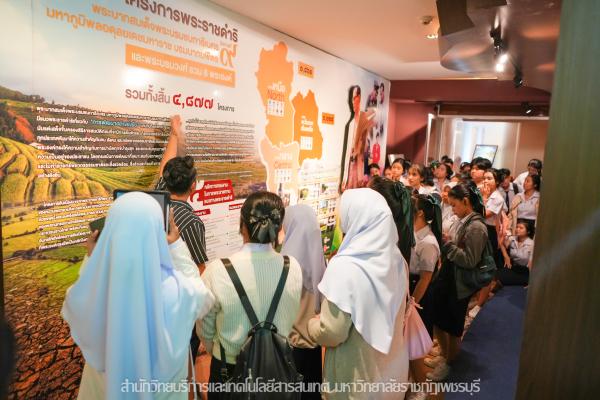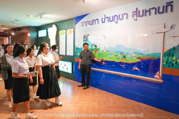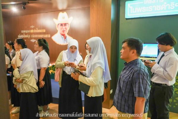 ในการเข้าเยี่ยมชมครั้งนี้ บุคลากรสำนักวิทยบริการและเทคโนโลยีสารสนเทศ ได้นำชมศูนย์เรียนรู้ศาสตร์พระราชาและภูมิปัญญาราชภัฏเพชรบุรี เริ่มตั้งแต่หอเกียรติภูมิปัญญามหาวิทยาลัยราชภัฏเพชรบุรี (PBRU Hall of Fame) และศูนย์เรียนรู้ศาสตร์พระราชาเพื่อการพัฒนาอย่างยั่งยืน ประกอบด้วยนิทรรศการ 3 ห้อง คือ ห้องรอยเสด็จฯ เพชรบุรี ห้องเฉลิมพระเกียรติ รัชกาลที่ 10 และพระบรมวงศ์ และห้องราชภัฏน้อมนำแนวพระราชดำริเพื่อการพัฒนา