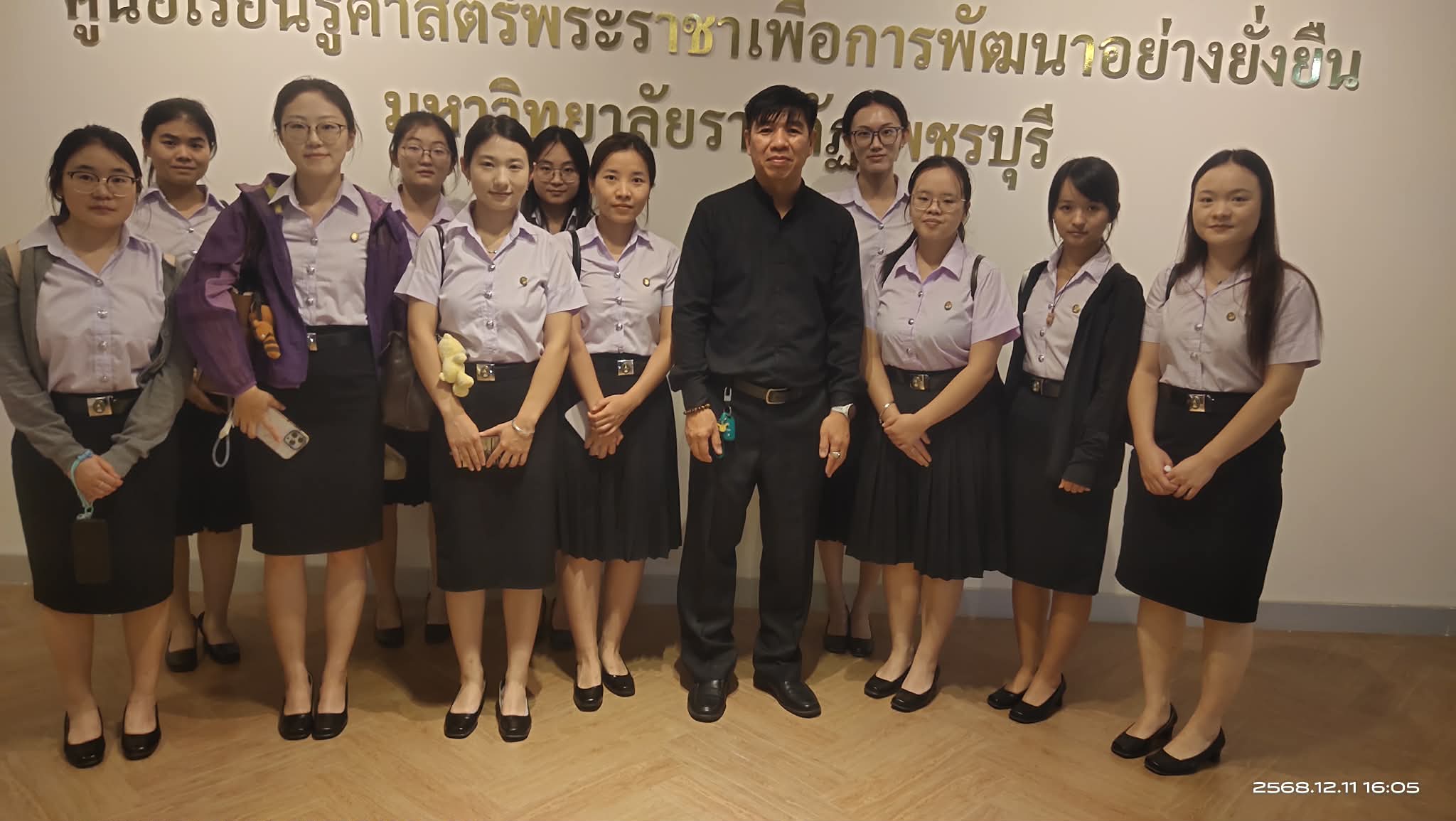 วันที่ 11 ธันวาคม 2568 อ.สัญญา ธีระเดชอุปถัมภ์ รองผู้อำนวยการสำนักวิทยบริการและเทคโนโลยีสารสนเทศ ได้พานักศึกษาแลกเเปลี่ยนสาธารณรัฐประชาชนจีน จำนวน 20 คน ของ ผศ.รพีพรรณ เทียมเดช ในรายวิชาภาษาไทย เข้าเยี่ยมชมศูนย์การเรียนรู้ศาสตร์พระราชาฯ สำนักวิทยบริการและเทคโนโลยีสารสนเทศ มหาวิทยาลัยราชภัฏเพชรบุรี