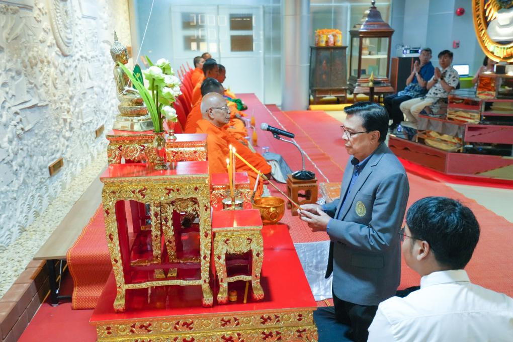 วันที่ 26 กันยายน 2568 เวลา 9.00 - 12.00 น. ผู้บริหารและบุคลากรสำนักวิทยบริการฯ จัดกิจกรรมทำบุญสำนักวิทยบริการฯ กิจกรรมในงานประกอบด้วยทำบุญสำนักวิทยบริการฯและเลี้ยงพระเพล โดยได้รับเกียรติจากผู้ช่วยศาสตราจารย์ ดร.เสนาะ กลิ่นงาม ที่ปรึกษาอธิการบดีมหาวิทยาลัยราชภัฏเพชรบุรี เป็นประธานในพิธี และผู้บริหารมหาวิทยาลัยราชภัฏเพชรบุรี ให้เกียรติร่วมงานในครั้งนี้ มีผู้เข้าร่วมงานจำนวน 30 คน เพื่อความเป็นสิริมงคลแก่บุคลากรและความสามัคคีในองค์กรที่จะเป็นแรงบันดาลใจให้บุคลากรมุ่งมั่นทำงานเพื่อประโยชน์ขององค์กรต่อไป